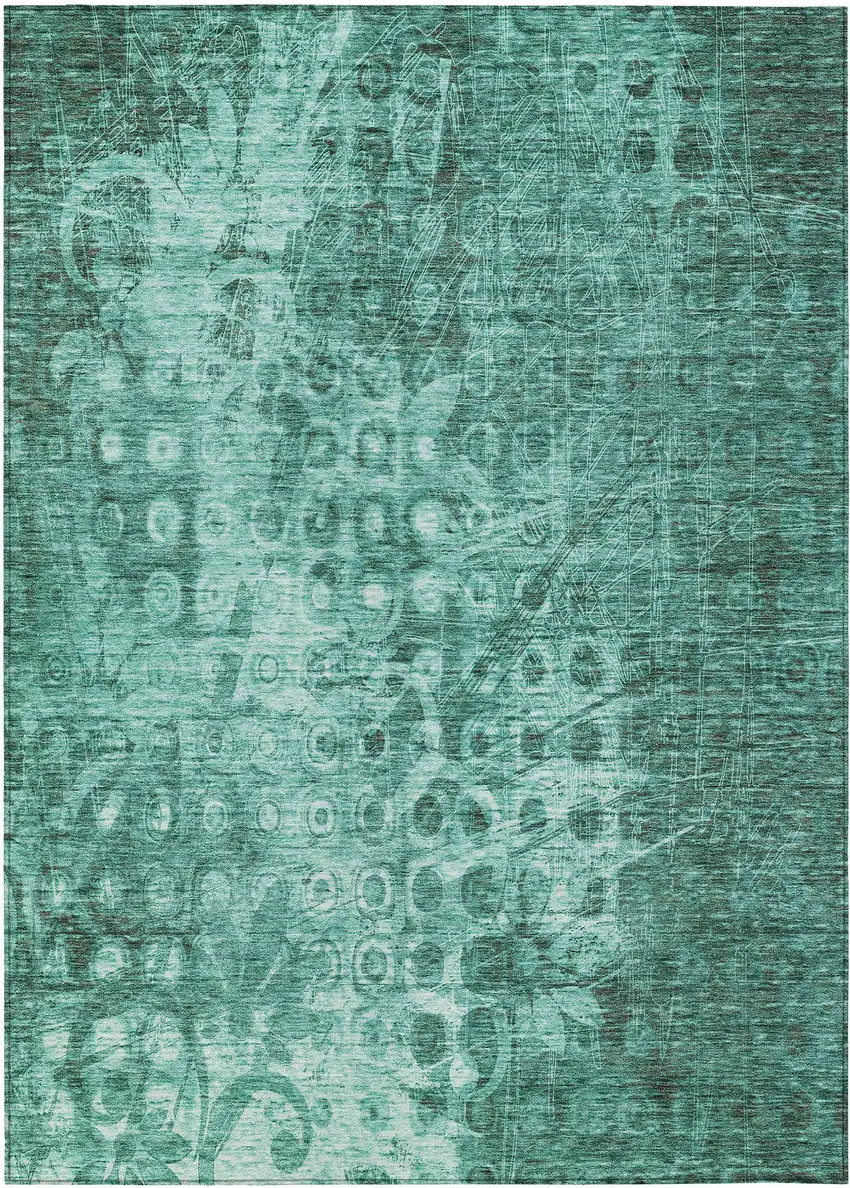 Teal Ikat Washable Non Skid Indoor Outdoor Area Rug