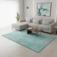 Teal Ivory And Gray Abstract Washable Area Rug With UV Protection