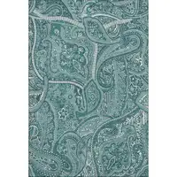 Teal Ivory And Gray Floral Medallion Washable Area Rug With UV Protection