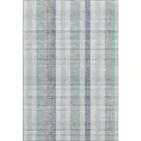 Teal Ivory And Gray Striped Washable Area Rug With UV Protection