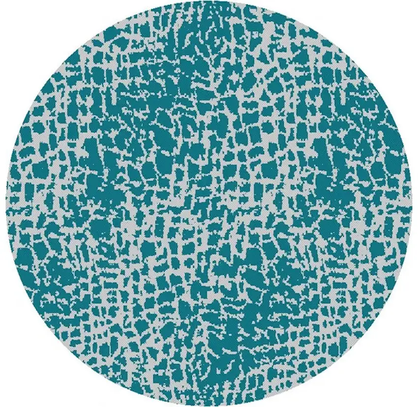 Teal Machine Woven UV Treated Animal Print Indoor Outdoor Round Area Rug