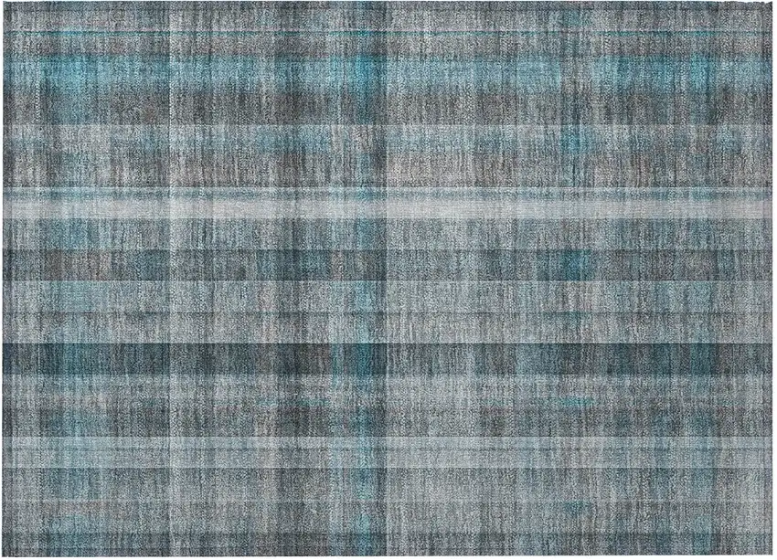 Teal Plaid Washable Non Skid Indoor Outdoor Area Rug
