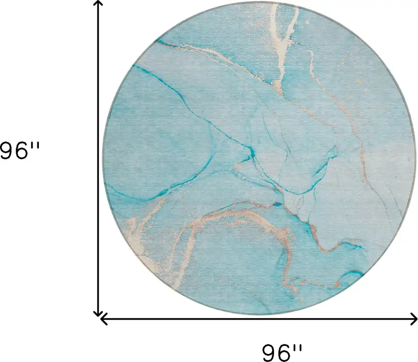 Teal Round Abstract Washable Indoor Outdoor Area Rug