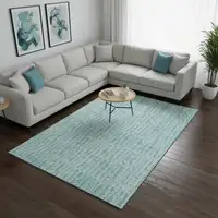 Teal Silver And Beige Abstract Washable Area Rug With UV Protection