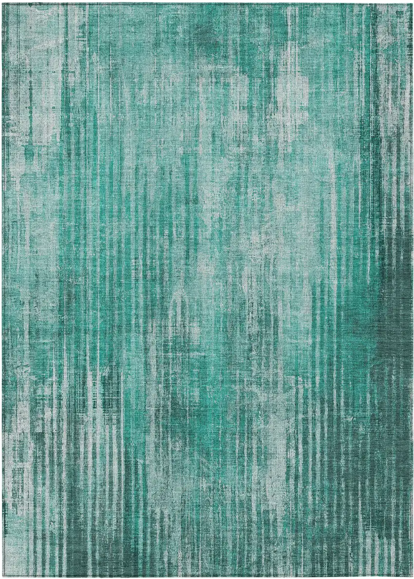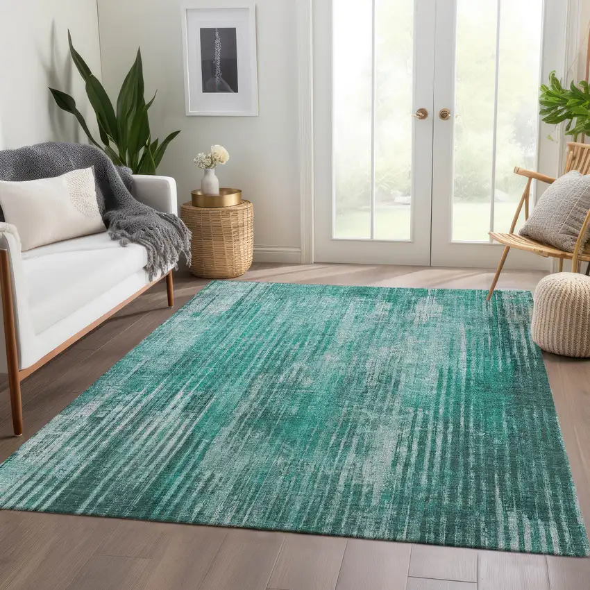 Teal Striped Washable Non Skid Indoor Outdoor Area Rug