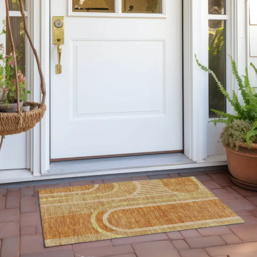 Terra Cotta Abstract Washable Non Skid Indoor Outdoor Area Rug