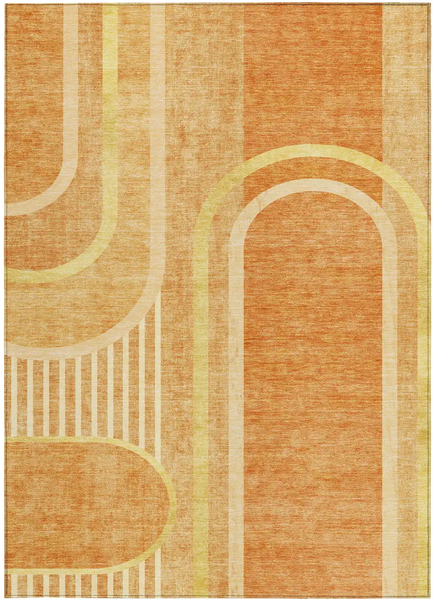 Set an inviting tone in your space with this 10-foot x 14-foot terra cotta abstract washable stain resistant non skid indoor outdoor area rug. This rectangle shaped rug features a abstract design in terra cotta to give it visual interest. A classic shape marries with good looking design for your space ideal for spaces with kids and pets, this rug is stain resistant to help repel stains and spilled liquids. Area rugs help to give warmth and sense of home to your space. 120-inch H x 168-inch W x 0.19-inch D