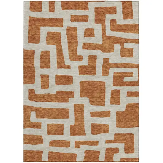 Terra Cotta And Gray Abstract Washable Indoor Outdoor Area Rug