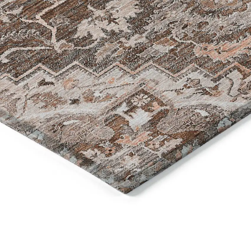 Terra Cotta Brown And Copper Oriental Washable Indoor Outdoor Area Rug