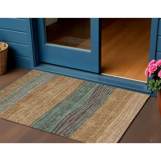 Terra Cotta Copper And Beige Striped Washable Indoor Outdoor Area Rug