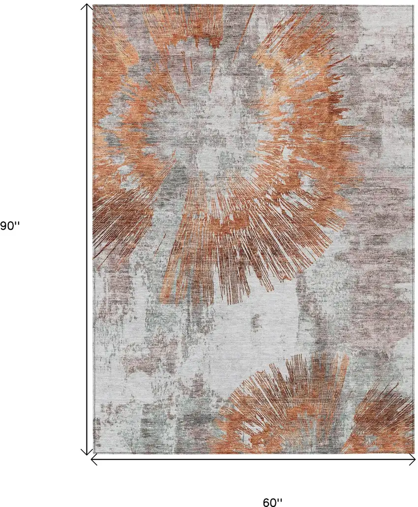 Set an inviting tone in your space with this 5-foot x 8-foot terra cotta copper and taupe abstract washable indoor outdoor area rug. This rectangle shaped rug features a abstract design that will work well both indoors or out. A classic shape marries with good looking design for your living room, hall, bedroom, porch, patio, or poolside. Ideal for outdoor spaces or high traffic areas with kids and pets, this rug is made from heavy duty polyester that is stain resistant to help repel water, dirt, and stains. Versatile in use, durable, and easy to maintain, this rug is an ideal solution to add a decorative and inviting touch to your indoor or outdoor space. 60-inch h x 90-inch w x 0.19-inch d.