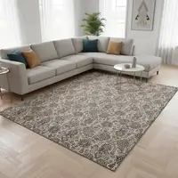 Turquoise And Gray Damask Washable Area Rug With UV Protection