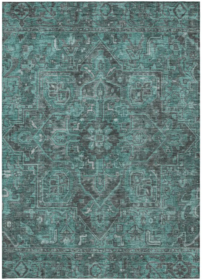 Turquoise Oriental Washable Non Skid Indoor Outdoor Area Rug