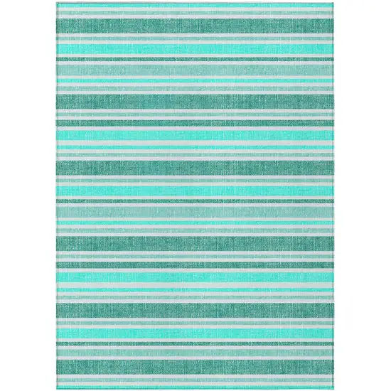 Turquoise Striped Washable Non Skid Indoor Outdoor Area Rug