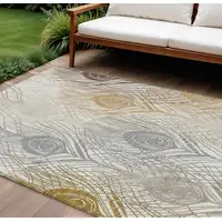 Wheat And Beige Abstract Washable Indoor Outdoor Area Rug