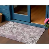 Wheat And Beige Floral Washable Indoor Outdoor Area Rug