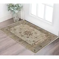 Wheat And Beige Geometric Washable Area Rug With UV Protection