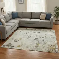 Wheat And Ivory Striped Washable Area Rug With UV Protection