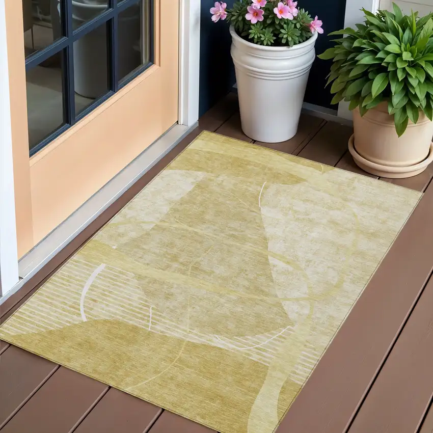 Wheat Gold And Ivory Abstract Washable Indoor Outdoor Area Rug