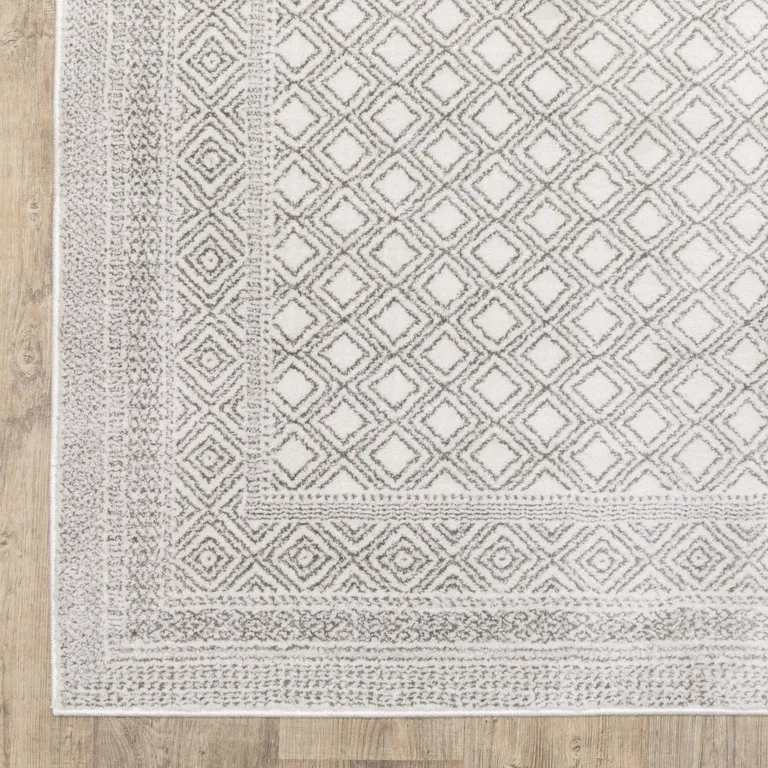White And Grey Oriental Power Loom Stain Resistant Area Rug