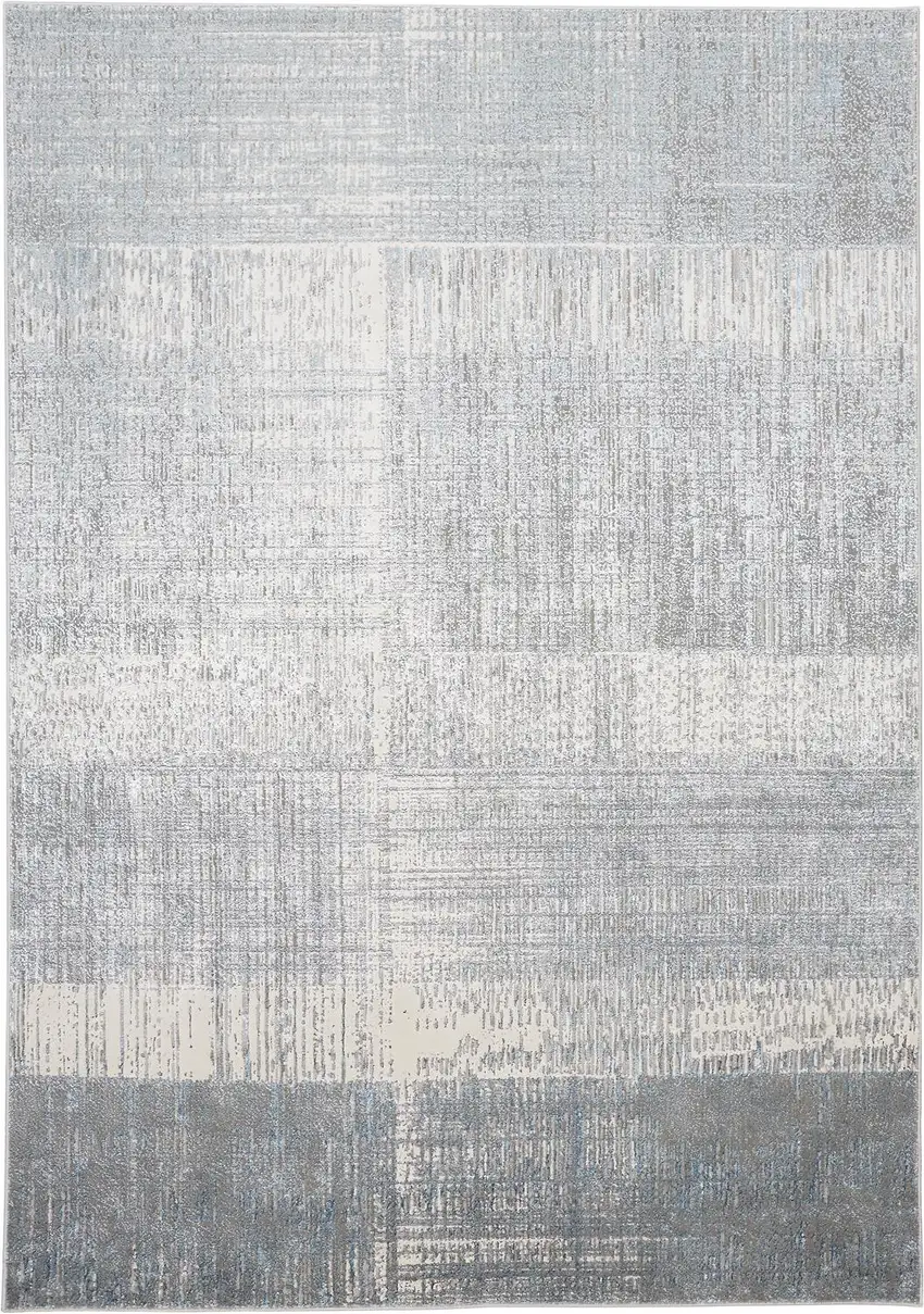 This area rug boasts a unique abstract pattern, seamlessly blending hues of white, gray, and blue. It would add an artistic touch to any room, making it stand out.