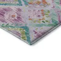 White Green And Pink Floral Medallion Washable Area Rug With UV Protection