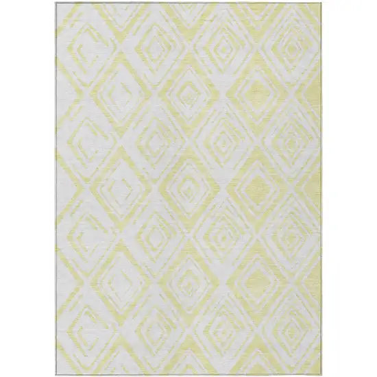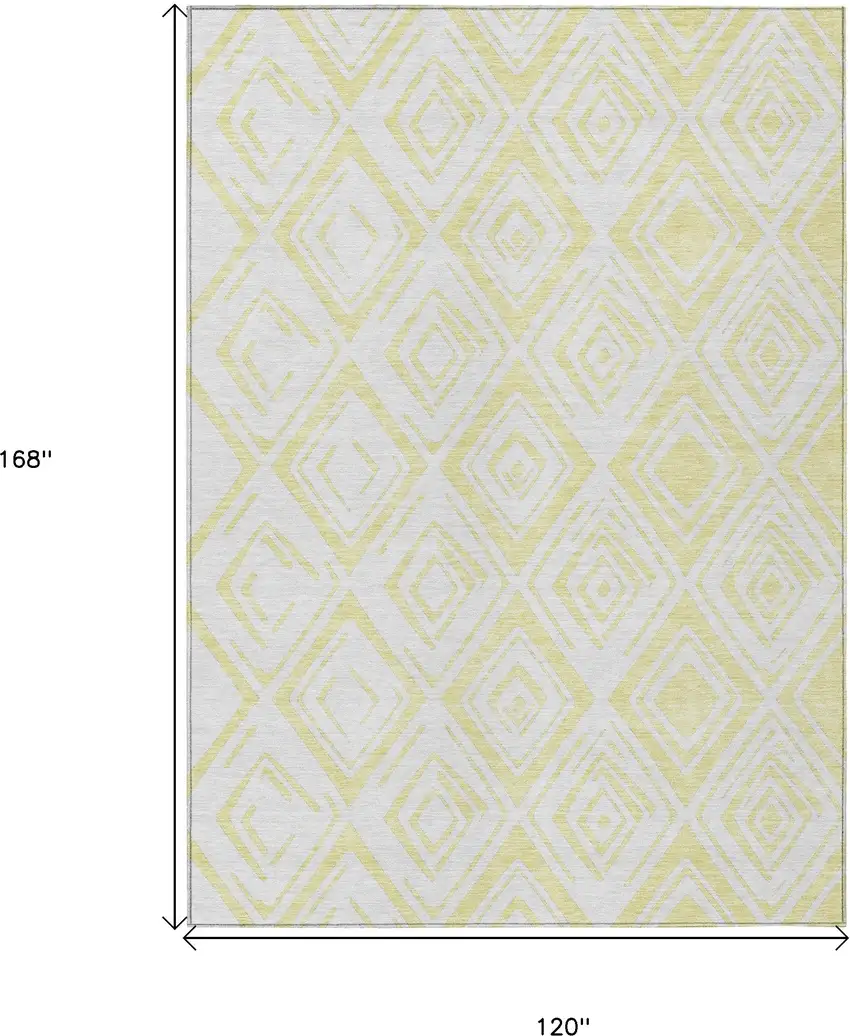 This 10-foot x 14-foot yellow and ivory geometric washable indoor outdoor area rug, is a great way to add warmth to a room. This rectangle shaped rug features a geometric design that will work well both indoors or out. A classic shape marries with good looking design for your living room, hall, bedroom, porch, patio, or poolside. Ideal for outdoor spaces or high traffic areas with kids and pets, this rug is made from heavy duty polyester that is stain resistant to help repel water, dirt, and stains. Versatile in use, durable, and easy to maintain, this rug is an ideal solution to add a decorative and inviting touch to your indoor or outdoor space. 120-inch h x 168-inch w x 0.19-inch d.