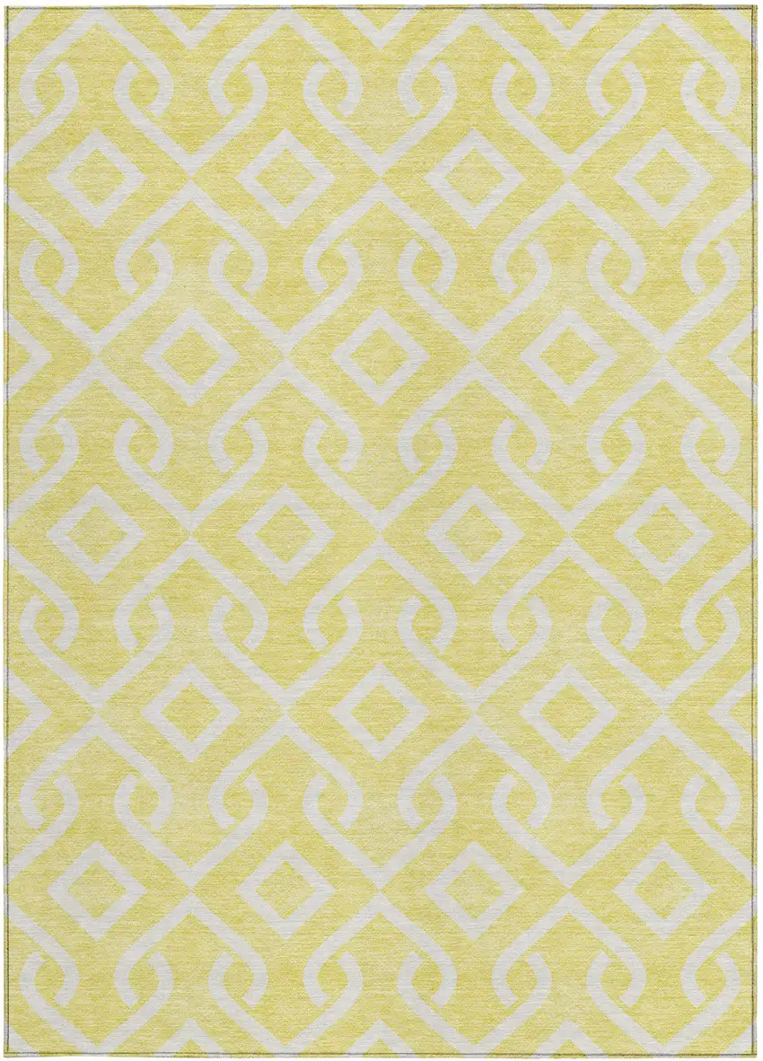 Yellow And Ivory Geometric Washable Indoor Outdoor Area Rug