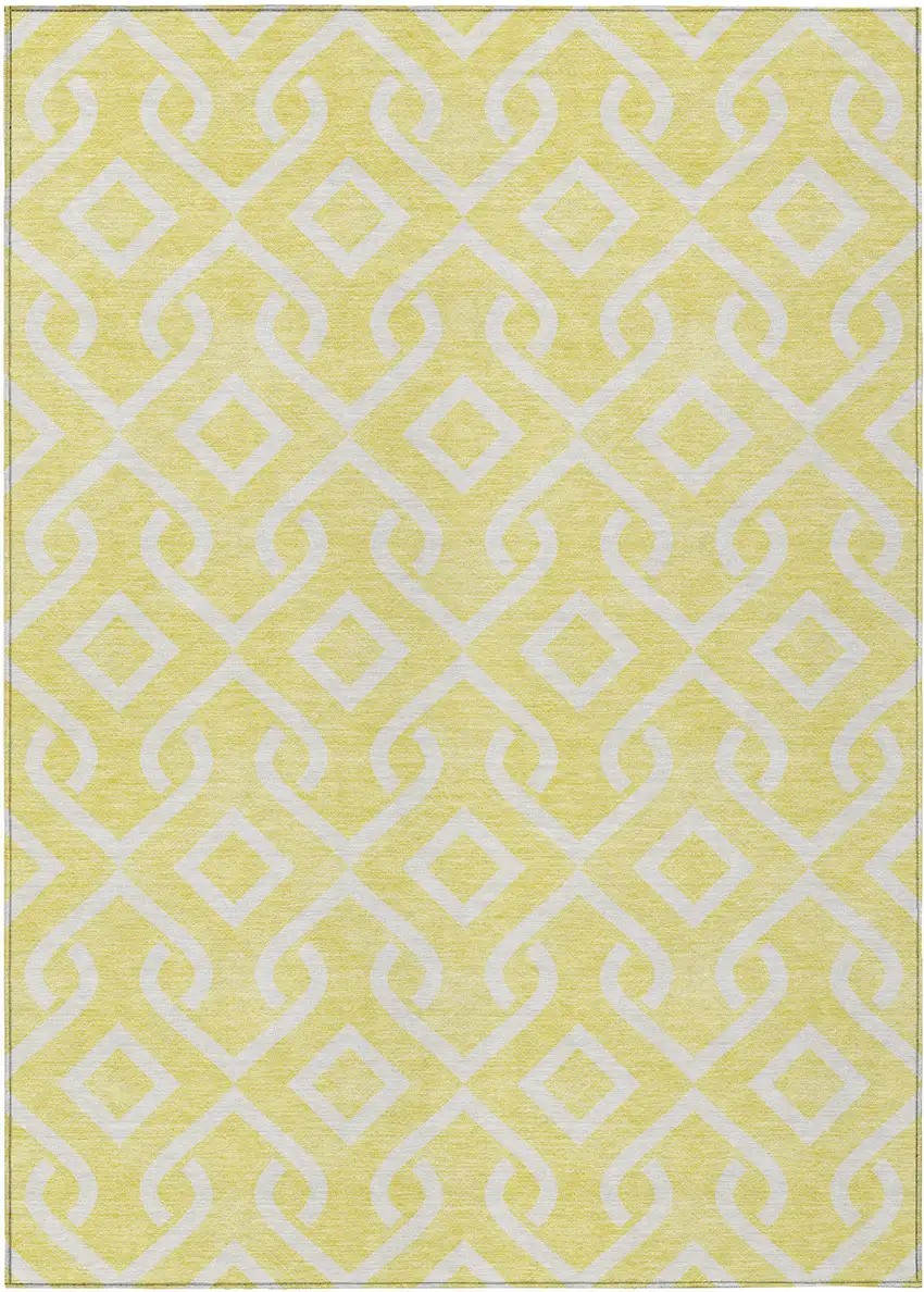 Yellow And Ivory Geometric Washable Indoor Outdoor Area Rug