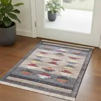 Yellow And Ivory Ogee Washable Area Rug With UV Protection