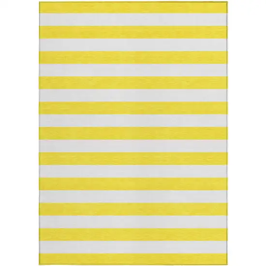 Yellow and White Striped Washable Non Skid Indoor Outdoor Area Rug