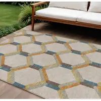 Yellow Blue And Terra Cotta Geometric Washable Indoor Outdoor Area Rug