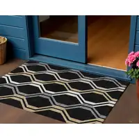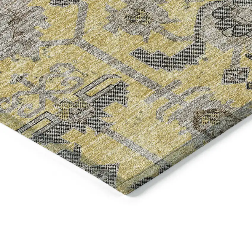 Yellow Gray And Charcoal Oriental Washable Indoor Outdoor Area Rug