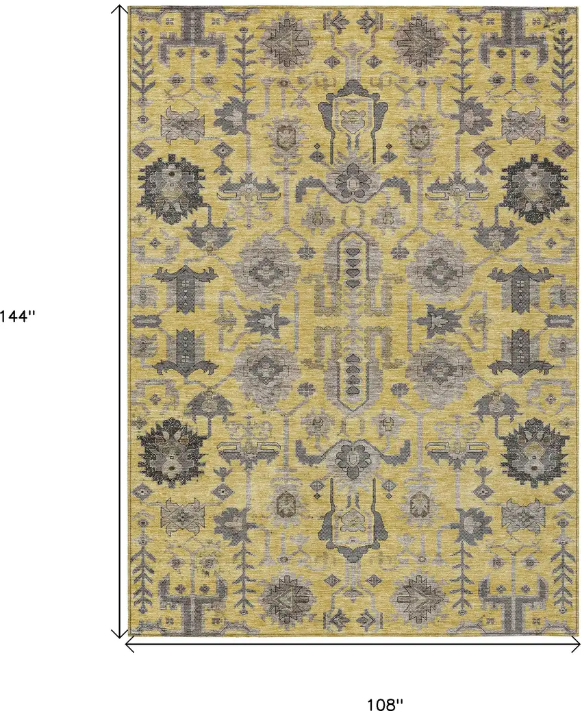 Yellow Gray And Charcoal Oriental Washable Indoor Outdoor Area Rug