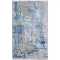 Yellow Ivory And Blue Striped Washable Area Rug With UV Protection