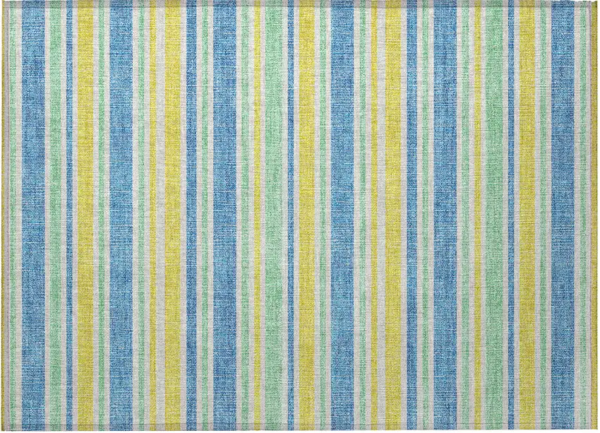 Yellow Striped Washable Non Skid Indoor Outdoor Area Rug